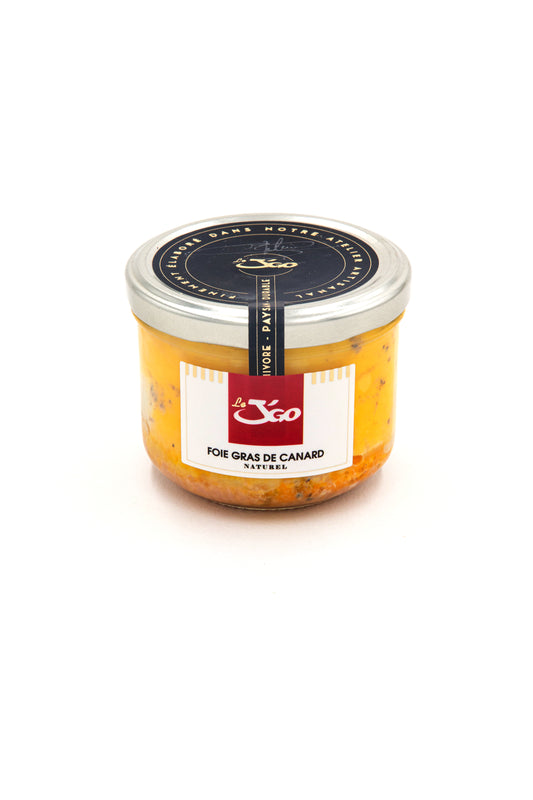 Ce foie gras artisanal est préparé et mis en bocal par les cuisiniers du J’Go selon la recette traditionnelle des familles paysannes gasconnes : une cuisson très douce et juste ce qu’il faut de sel. Nos cuisiniers ont choisi de relever subtilement le foie d’une pointe de poivre noir de Tellichery, épice au piquant élégant et discret. Cette maîtrise de la cuisson et cet assaisonnement parcimonieux permettent de mettre en valeur le travail des éleveurs et de la gaveuse Brigitte Lescure. À Saint-Médard, dans le Gers, la famille Lescure est l’une des dernières à pratiquer l’éviscération à froid, c’est-à-dire qu’une fois plumé, le canard est conservé au frais 18 heures avant toute manipulation. Condition sine qua non pour obtenir un foie de grande qualité gustative et disposer de condition d’hygiène optimale. Cette étape qualitative coûteuse a été abandonnée par la plupart des gaveurs, mais Brigitte y teint, et le J’Go aussi !
